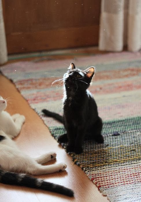 Kun kolmen Seinäjoki-viikon jälkeen tulimme kahden kissan kanssa Tampereelle, pienessä Mörrissä tapahtui suuri muutos. Yht’äkkiä sitä alkoi näkymäänkin enemmän kuin satunnaisesti: se saattoi nukkua näkyvillä yksin ja tuli ruoka-aikaan aina tarkastamaan kupin sisällön, jolloin sitä sai vapaaehtoisesti silitettyä. Madotuksesta mentiin vähän takapakkia, mutta parissa kuukaudessa pienestä panikoivasta navettapennusta tuli ihan sosiaalinen citykissa. Joskin vieraat yleensä näkivät meillä vain yhden kissan.