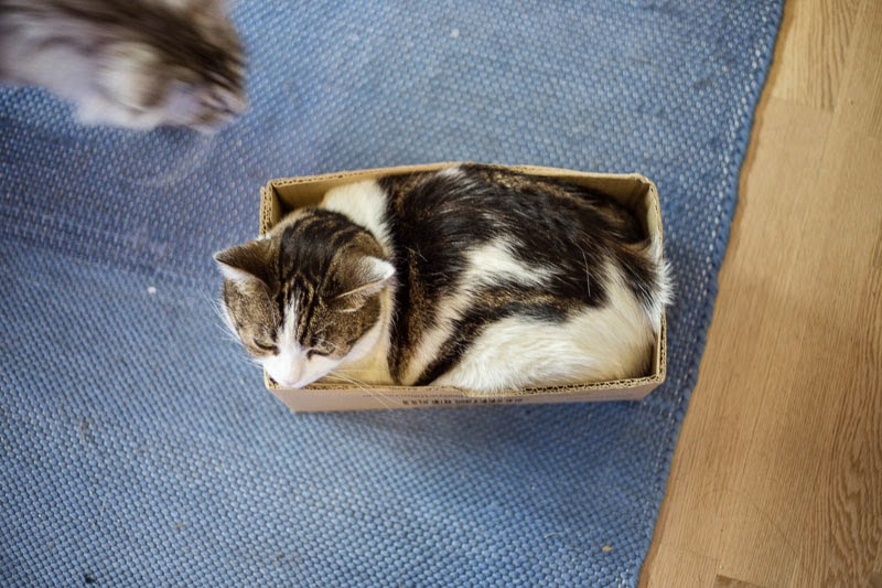 Laatikon vapauduttuessa sitä kävi haistelemassa useampikin katti ja jälleen toinenkin kissa joutui sen armoille.