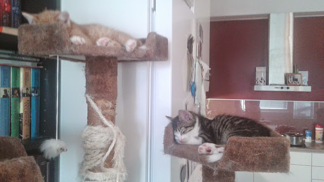 Ehkä pitäisi. Eihän ne villikissaa ole enää pitkään aikaan nähneetkään, eivätkä varmaan ulkona enää pärjäisikään samalla tavalla kuin aiemmin. Antibiootti+kipulääke meni eilenkin tosi hyvin ruiskulla, kunhan vaan Tiuhti pääsi omaan "turvapaikkaansa". On se niin hieno pieni kissa <3