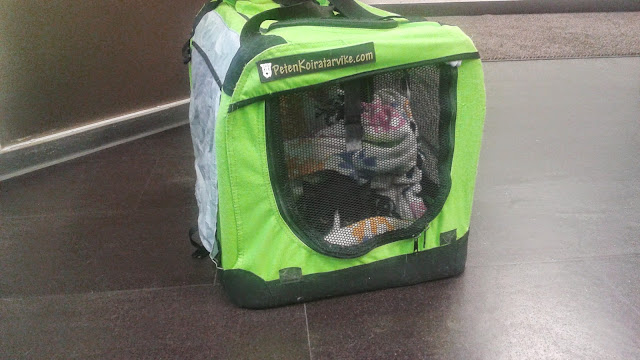 Oletin lääkärikäynnin olevan täynnä kynsiä ja hampaita käsivarressa, ja varoittelin asiasta jo aikaa varatessa. Osoittautuikin, että neiti meni kuljetuskoppaan ihan itse (vähän sähisten toki) ja lääkärissä käyttäytyi paljon kiltimmin kuin meidän kesykissat! Tarkempaa tutkimusta varten Tiuhti kuitenkin rauhoitettiin, koska piti päästä räpläämään paremmin suuta.