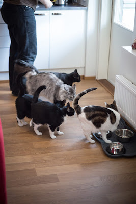 Kissat suhtautuivat muuttoon yllättävän hyvin. Jännityksellä odotin muun muassa meidän tilapäisten asukkien Tiuhtin ja Viuhtin reagointia asiaan: kopitus kuitenkin oli ohi parissa minuutissa (???!!) ja hirmu uteliaasti ne suhtautuivat ympäristöönsä, ja kiersivät tutkimassa asuntoa heti ensimmäisenä iltana. Tässä näkee, kuinka paljon parivaljakko on tullut eteenpäin meilläoloaikanaan!