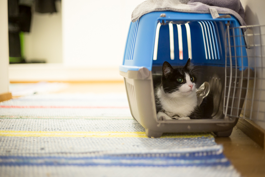 Oman jännityksensä asiaan toi tietenkin myös pariskunnan kopittaminen, koska meillä ei ole tarjota nyt yhtäkään tyhjänä olevaa pienempää huonetta, jossa kopittaminen olisi onnistunut paremmin. Viuhtin kanssa asiaa katsottiin koulutukselliselta näkökulmalta ja edellisillan reenin johdosta aamulla opit olivat vielä otsalohkossa, ja koppaan mentiin hienosti minuutissa. Tiuhtin kanssa asia oli vähän vaativampi, koska hän yritti pyöriä olohuone-keittiö-akselilla ympäri minua pakoon – kun sain apukäden, homma oli alle minuutissa tehty. Saatiin kisuli eteiseen rauhoittumaan, josta saimme hänet nostettua kopan suulle ja Tiuhti käveli koppaan itse – naukuen sydäntäsärkevästi.